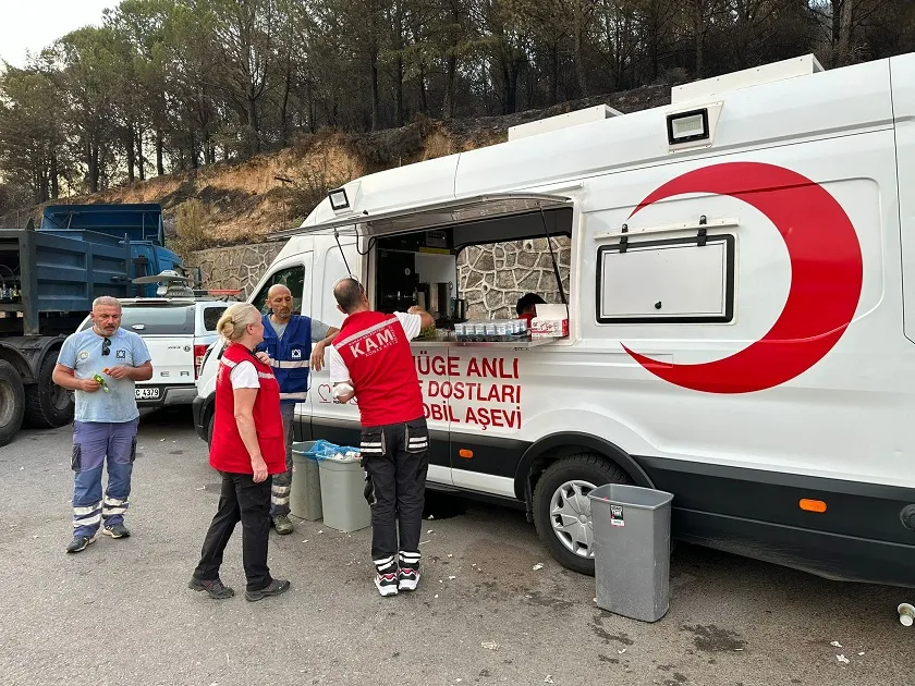 Türk Kızılay, orman yangınlarıyla mücadele eden İzmir, Manisa, Muğla, Aydın, Bolu ve Karabük illerinde, müdahale ekipleri ve yangından etkilenen vatandaşlara yönelik beslenme desteğini sürdürüyor. Yangının ilk anından itibaren harekete geçen Türk Kızılay, sahada 10 bini aşkın sıcak yemek, 9 bini aşkın kumanya ile 50 binden fazla su ve içecek desteği sağladı.