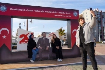 Eskişehir Büyükşehir Belediyesi’nin 29 Ekim Cumhuriyet Bayramı nedeniyle Ulus Meydanı’na yerleştirdiği Ulu Önder Mustafa Kemal Atatürk’ün üç boyutlu maketi vatandaşlar tarafından yoğun ilgi gördü. Vatandaşlar 3 boyutlu Atatürk maketiyle fotoğraflar çektirerek sosyal medya hesaplarından paylaştı.
