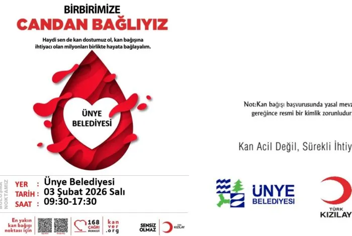 Ünye Belediyesi ve Türk Kızılay iş birliğiyle bir kan bağışı kampanyası düzenlenecek. Kampanyaya tüm vatandaşlar davet edildi.