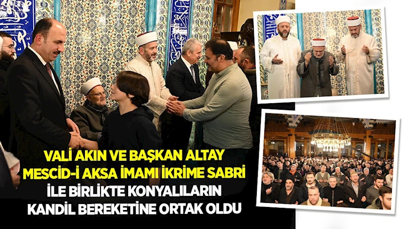 Konya Valisi İbrahim Akın, Konya Büyükşehir Belediye Başkanı Uğur İbrahim Altay ve şehrimizde misafir olan Mescid-i Aksa İmam Hatibi Şeyh İkrime Sabri, Kapı Camii’nde Konyalıların Berat Kandili coşkusuna ortak oldu.