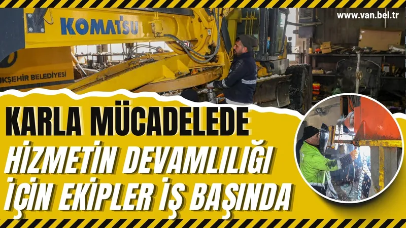 Van Büyükşehir Belediyesi, karla mücadele sırasında arızalanan iş makinelerini kendi atölyelerinde onarıyor.