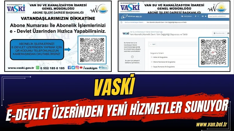 Van Su ve Kanalizasyon İdaresi Genel Müdürlüğü (VASKİ), dijitalleşme çalışmaları kapsamında e-Devlet üzerinden yeni hizmetler sunmaya başladı.