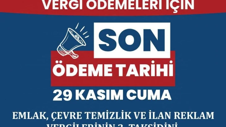 2024 yılına ait Emlak Vergisi, Çevre Temizlik Vergisi ve İlan Reklam Vergisi ikinci taksit ödemelerinin son günü 29 Kasım Cuma