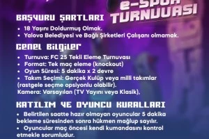 Yalova Belediyesi, gençlere yönelik sosyal ve kültürel faaliyetlere bir yenisini daha ekliyor. Türkiye’de hızla gelişen dijital oyun kültürüne destek vermek amacıyla FC 25 Tekli Eleme formatında düzenlenecek E-Spor Turnuvası, 8-10 Ağustos 2025 tarihleri arasında Batı Sahil Bandı Etkinlik Alanı’nda gerçekleşecek.