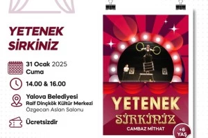 31 Ocak 2025 Cuma günü ise, Cambaz Mithat tarafından “Yetenek Sirkiniz” isimli gösteri, Yalova Belediyesi Raif Dinçkök Kültür Merkezi’nde gerçekleşecek. 6 yaş ve üzeri çocuklara hitap eden etkinlik, saat 14.00 ve 16.00’da iki seans şeklinde sunulacak.