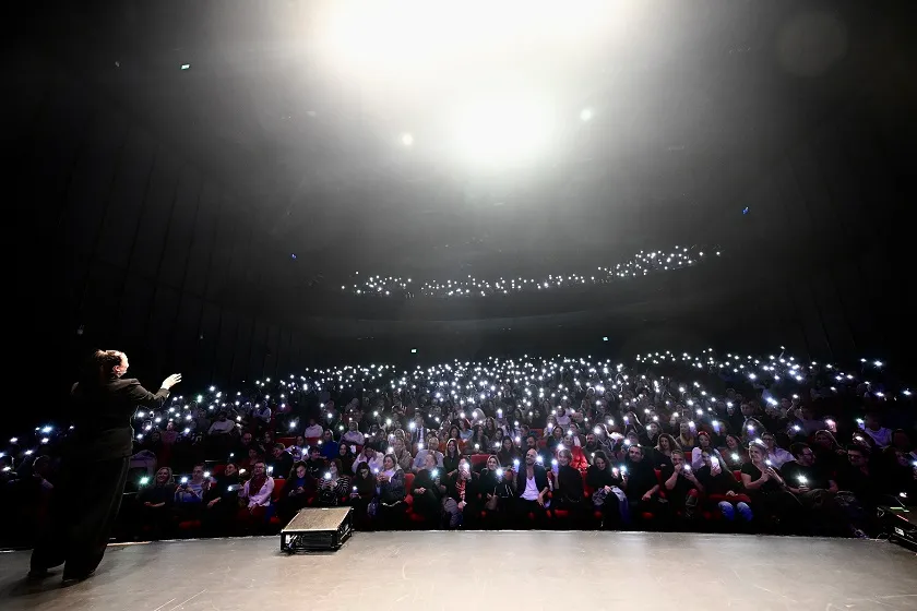 Yasemin Sakallıoğlu önceki gün ‘Doğru Koca Nasıl Seçilir?’ gösterisiyle Maximum Uniq Hall sahnesindeydi. BKM organizasyonuyla gerçekleştirilen stand-up’ı izlemeye gelenler kar ve fırtına dinlemedi. İstanbul’da kar yağışı uyarısı verilmesine rağmen ünlü komedyenin hayranları salonu hıncahınç doldurdu. Yasemin Sakallıoğlu kendisini izlemeye gelen hayranlarına, ‘Uçak seferleri iptal oldu’, ‘yollar kapanacak’ dediler ama bakın salonu doldurduk. İyi ki geldiniz” sözleriyle teşekkür etti.