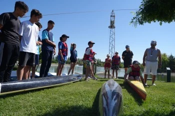 Gençlik ve Spor Hizmetleri Dairesi Başkanlığı tarafından organize edilen eğitimlerde, 8 ile 17 yaş aralığındaki çocuklar, su sporlarıyla tanışarak hem eğleniyor hem de temel kano becerilerini öğreniyor.