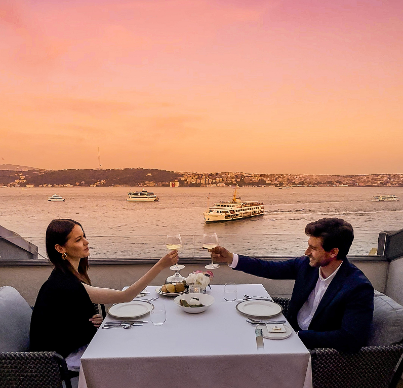 Bosphorus Teras Oda, Teraslı Junior Suit, Executive Bosphorus Suit, Barbaros Suit veya Shangri-La Suit'te konaklayan misafirler Executive Aşçı Giovanni Terracciano tarafından tasarlanan özel yemek deneyimiyle unutulmaz bir konaklama yaşayacaklar. Özel teraslarında muhteşem Boğaz manzarası eşliğinde dört servisli lezzetli bir menünün tadını çıkararak romantik bir kaçamak ile unutulmaz anılar biriktirecekler. Ayrıca tüm süitlerde konaklayan misafirler, kahvaltılarını tercihlerine göre süitlerinde veya boğaz manzarası eşliğinde IST TOO Restoran’da alabilecekler.