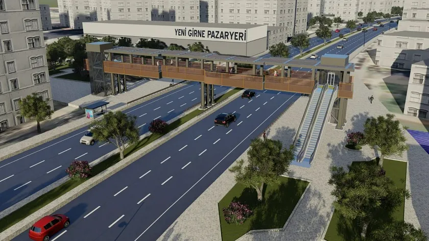 İzmir Büyükşehir Belediye Başkanı Dr. Cemil Tugay’ın kentin ulaşım konforunu artırmak için başlattığı projeler arasında yer alan Karşıyaka Yeni Girne Yaya Üst Geçidi çalışmaları hızla ilerliyor. 50 metre uzunluğunda, 6 metre genişliğinde ve 5 metre yüksekliğindeki üst geçitte 4 yürüyen merdiven ve 2 asansör bulunacak. 2025 yılının ikinci yarısında hizmete açılacak üst geçit Soğukkuyu Mahallesi ile Örnekköy Mahallesi arasında bağlantı kurarak pazaryeri, hastane ve eğitim kurumları başta olmak üzere yaya ulaşımının yoğun olduğu bölgeye nefes aldıracak. Girne Bulvarı üzerindeki trafik akışını da rahatlatacak üst geçidin ayak temellerinden biri Yeni Girne Pazaryeri yanında diğeri ise Öğretmenler Parkı yanında yer alıyor. Üst geçit gölgeliği, yayaların dinlenerek çevreyi seyredebileceği oturma alanları ile bölgeye renk katacak.