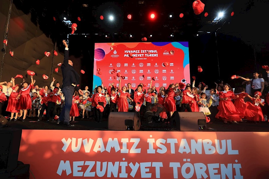 İstanbul Büyükşehir Belediyesi’nin eğitimde fırsat eşitliği ilkesiyle hayata geçirdiği, örnek sosyal projesi Yuvamız İstanbul, 2023-2024 Eğitim döneminin mezunlarını verdi. Okul öncesi eğitimlerini tamamlayan çocuklar için Yenikapı Etkinlik Alanı’nda şenlikli, müzikli; dans ve jonglör gösterili, atölyelerin de yapıldığı mezuniyet töreni düzenlendi. Etkinlikte çocuklarla bir araya gelen İBB Başkanı Ekrem İmamoğlu, mezuniyetlerin klasikleşen seremonisi yaparak çocuklarla şapka fırlattı.