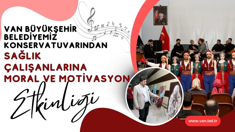 Van Büyükşehir Belediyesi Konservatuvarı eğitmenleri, sağlık çalışanlarına yönelik moral ve motivasyon etkinliği gerçekleştirdi. Programda halk oyunları, resim sergisi ve konser yer aldı.